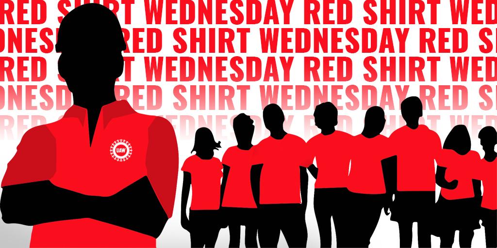We encourage you to wear red on Wednesdays and to organize your fellow workers to do the same. Read some tips below, and be sure tag the UAW in your #RedShirtWednesday photos!